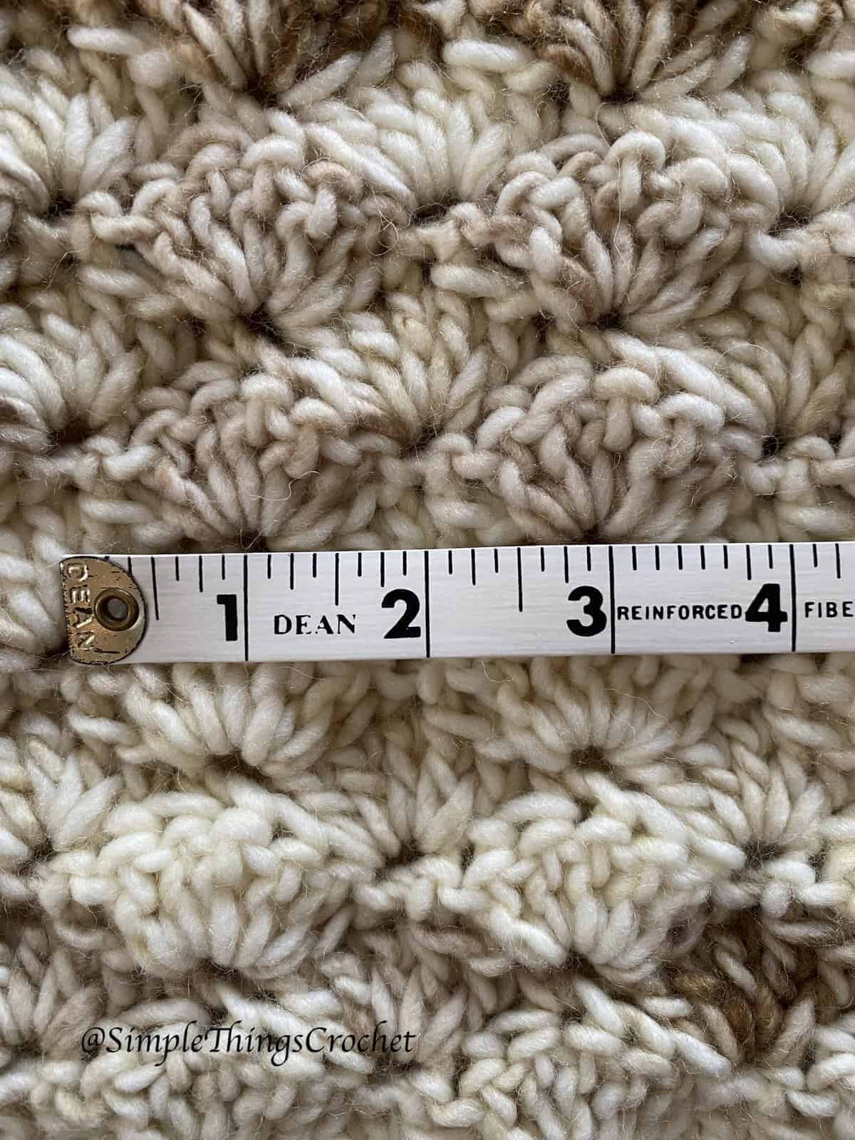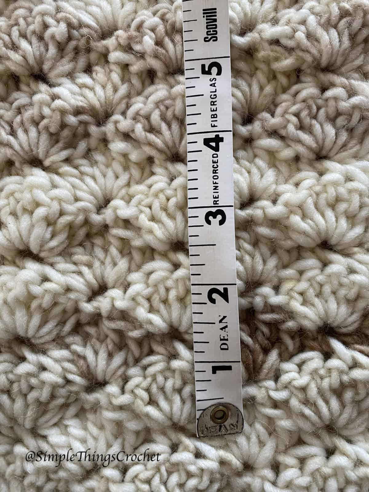 2 shells and 6 rows = 4” (see photos below for clarification)